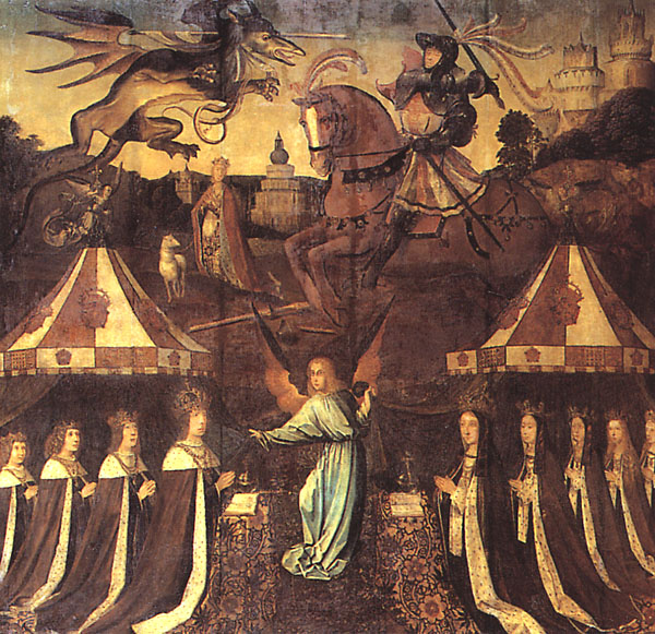 Allegorical painting from the Royal Collection, showing Henry VII, Elizabeth, and their seven children. In truth, only four of the children survived to adulthood.