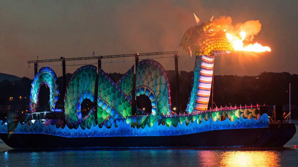 If the monster of Lough Foyle is a hoax, then it’s a relatively benign one – more benign, at any rate, than the genuine monsters who terrorised the North Sea before their corpses were sent to lie rusting on the lake bed. But, in a throwback to our previous article, a few months later the Foyle would be the site of a re-enactment of the confrontation between Columcille and the Loch Ness Monster, as a giant reconstruction of the monster fought the saint in a show designed to be the centrepiece of Londonderry/Derry’s time as European City of Culture. And perhaps it is for the best that the fictional monsters of today displace the all too real monsters of our past – here, at the lake that lies between.
