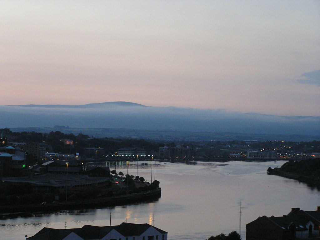 The lough is the outflowing of the River Foyle, which takes its name from the lake. It begins from where the Finn and Mourne rivers join, at the border between Donegal and Tyrone where the towns of Strabane and Lifford face each other over the water. The circumstances of this place “where three rivers meet” is, a taxi driver once solemnly assured me, proof positive that the Holy Grail is concealed somewhere in the neighbourhood. The river then makes its way across the country to the city of Derry (or Londonderry – again, opinions differ.) At one time two rival railway companies (the County Donegal Railways Joint Committee and the Great Northern Railway) ran trains on opposite sides of the river from Strabane to Derry, although the seperation of the North and the Republic led to severe logistical difficulties over this when the Donegal company wound up on the Northern Irish side, and vice versa. From there it makes its way out to the lake.