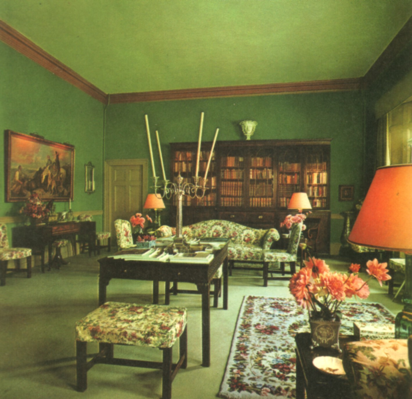 The library of Glenveagh Castle in 1973. It remains today in the same state, preserved as McIlhenny left it.